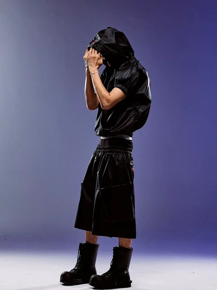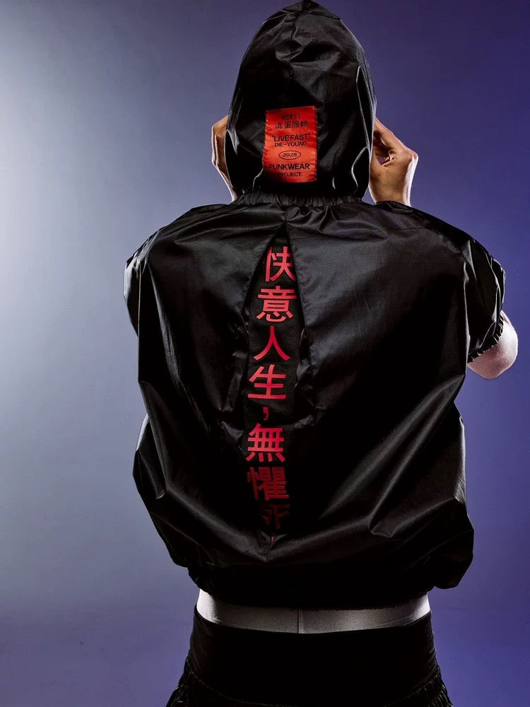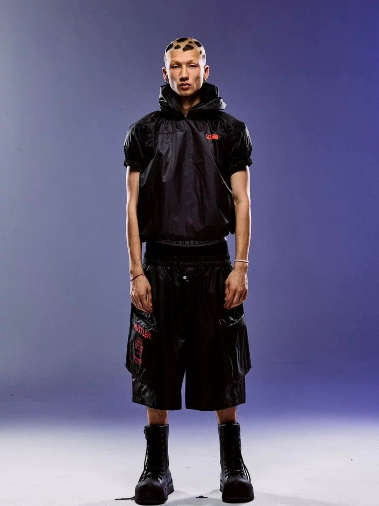 ROCKSTA "GHETTO SOLIDER" Spring Summer Black Hooded Short Sleeve Boxer Top T-Shirt