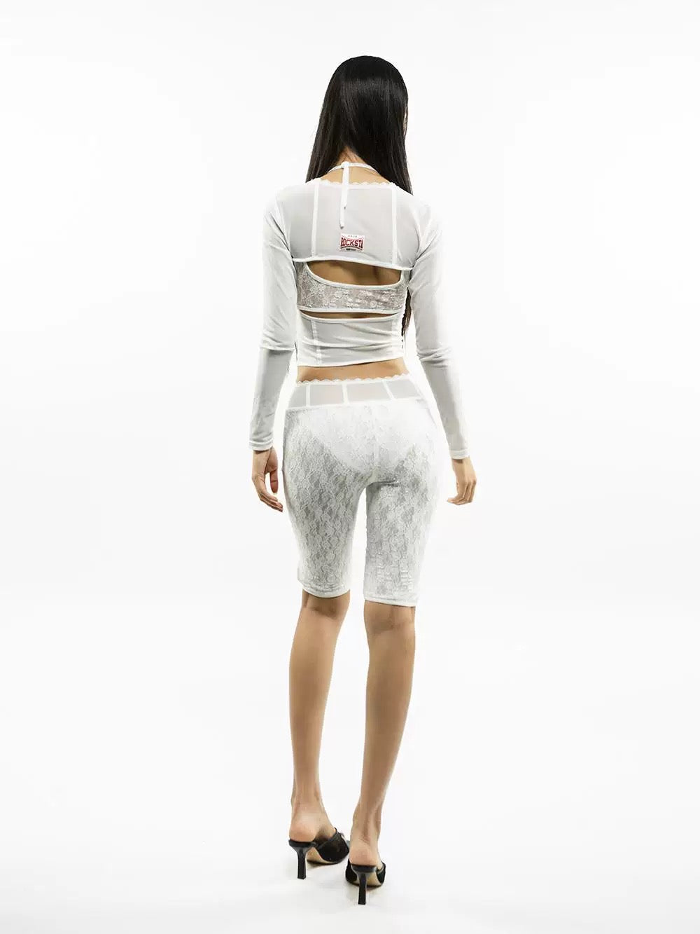 White Lace Bottom Inside Slim 7/10 Shorts